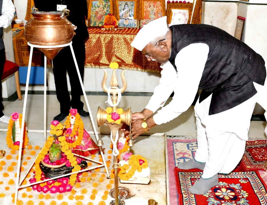 Newly appointed Governor of Rajasthan Shri Haribhau Kishanrao Bagde at Shri Raj Rajeshwar Mahadev temple at Lok Bhavan