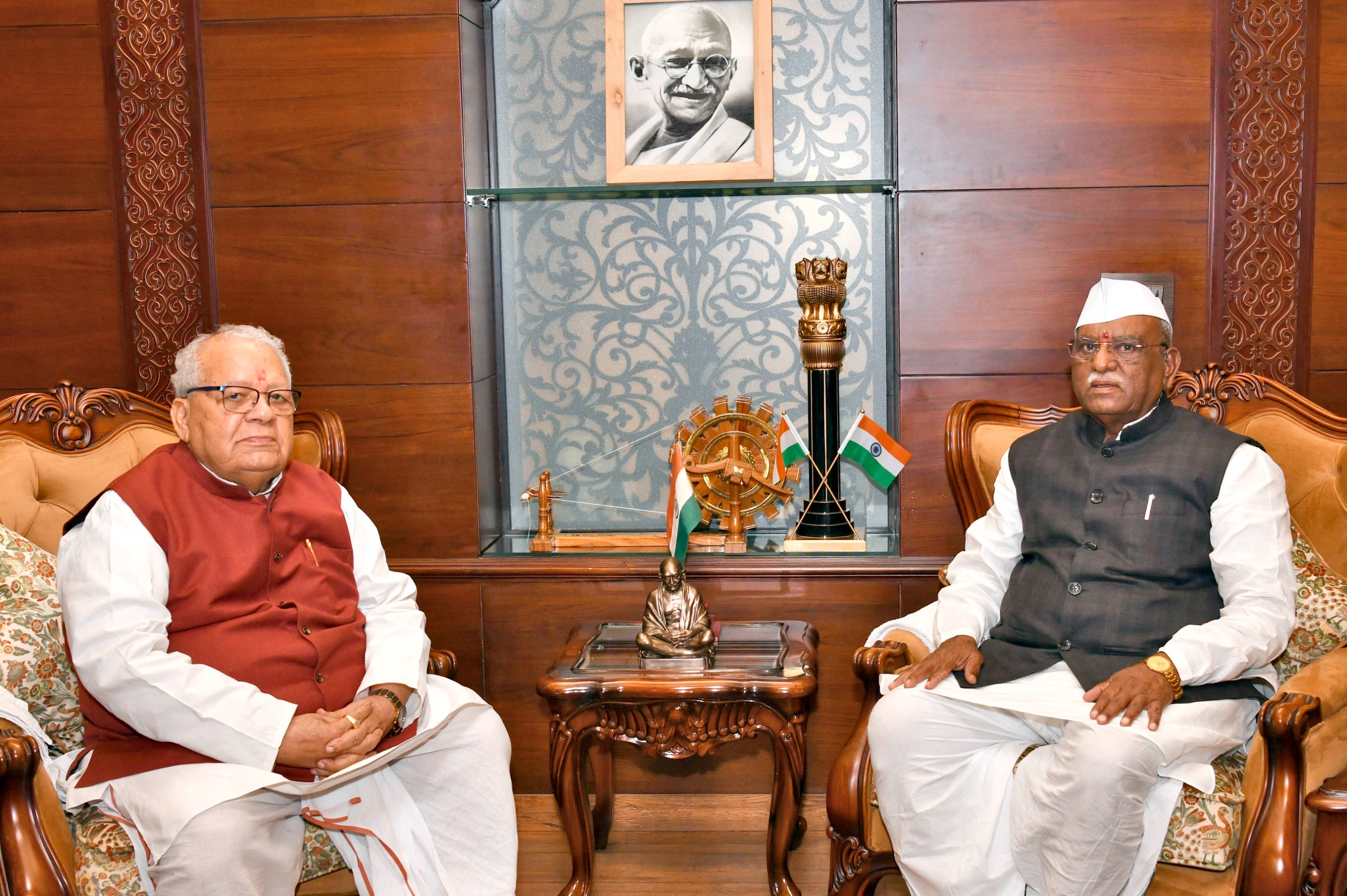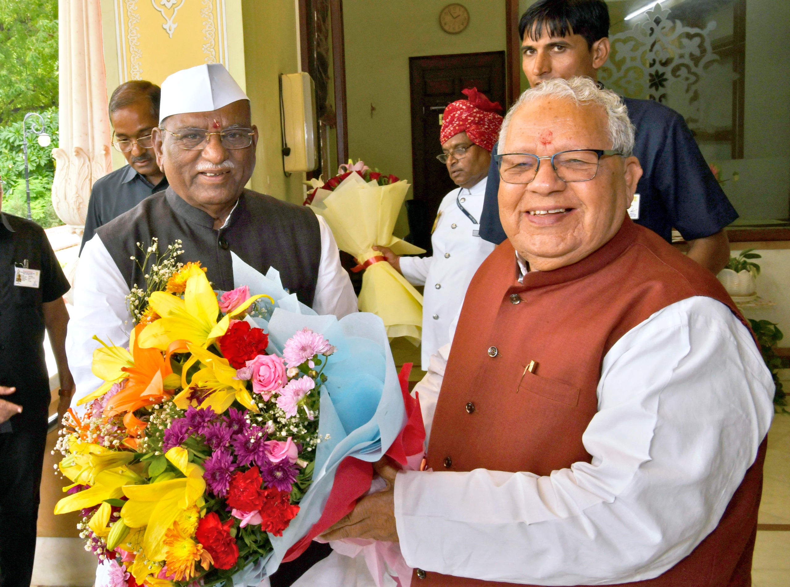 Newly appointed Governor of Rajasthan Shri Haribhau Kishanrao Bagde being welcomed by Speaker of Rajasthan Legislative Assembly